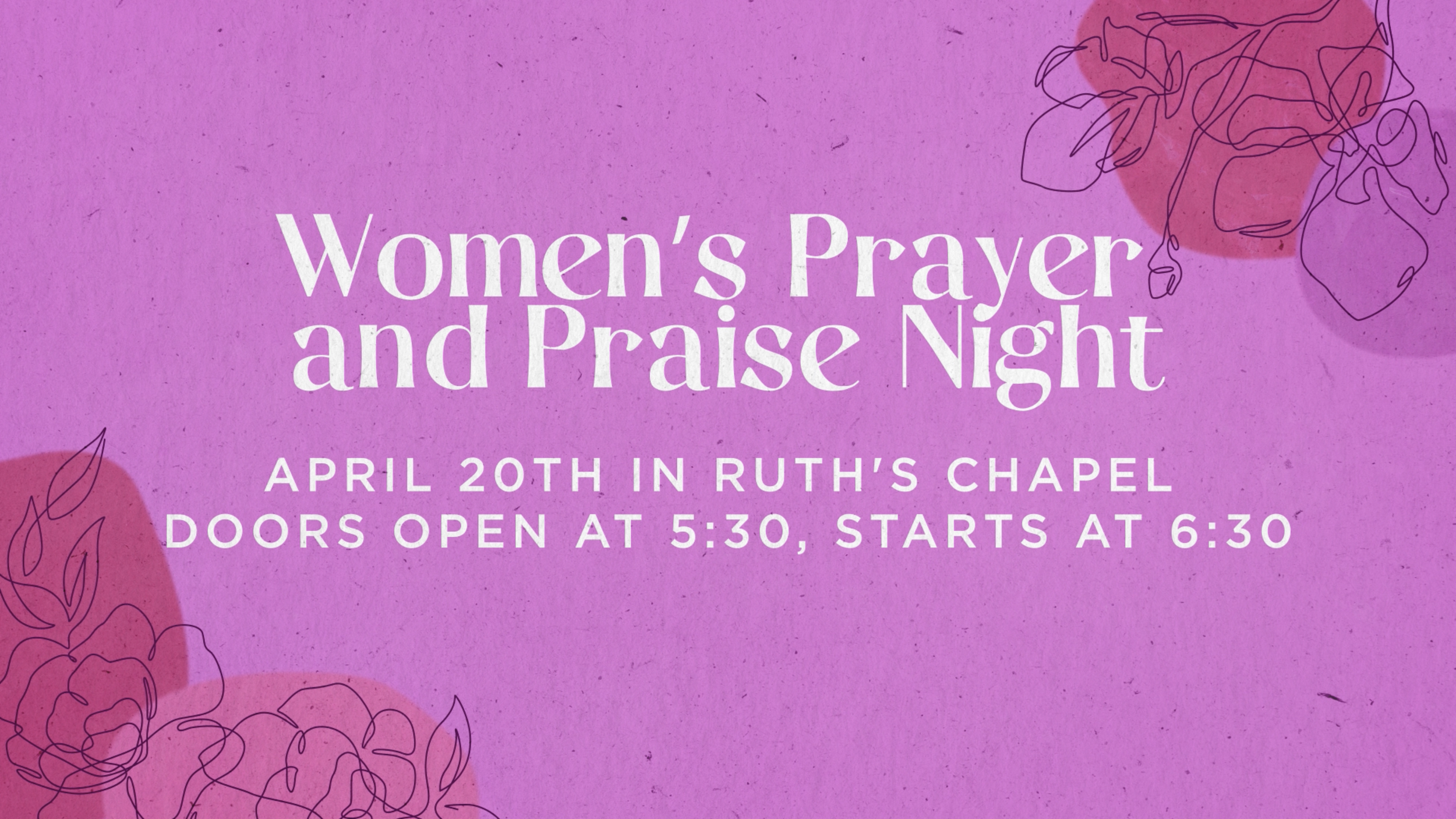 Women's Night of Prayer & Praise, Doors open at 5:30 in Ruth's Chapel.